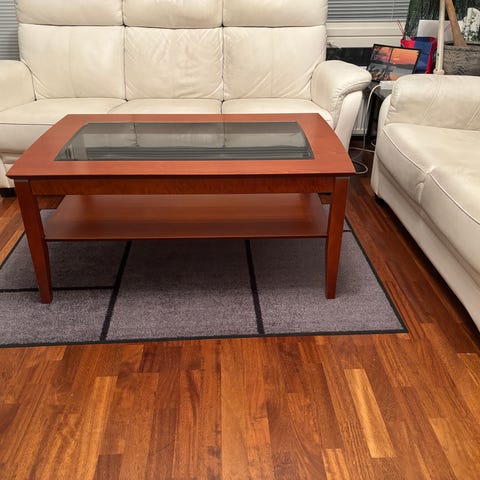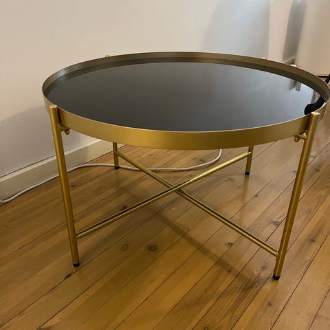 Kaksiosainen sohvapöytä. Ostettu Granitista. Pöydän pinta naarmuuntunut ja laitettu dc-fixiä päälle. Pinta on siis itse tuunattavissa :) Muuten hyvässä kunnossa.