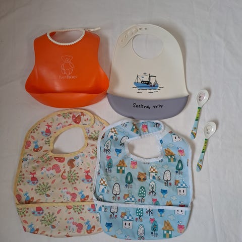 Myydään kolmen kappaleen setti LÄSSIG-merkin vauvan ruokalappuja.