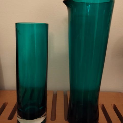 Vihreä lasimaljakko,Kork.26cm.