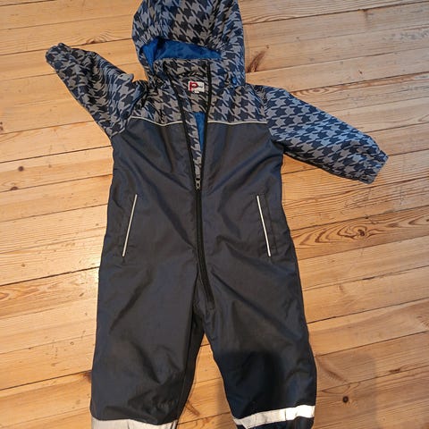 Paljon käytetty haalari, vetoketju toimii eikä isoja reikiä. Vettä ei enää tietenkään pidä, mutta rymyhaalarina ollut toimiva.