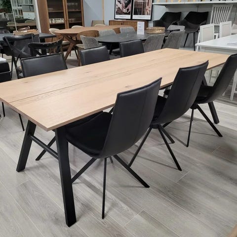 Kaunis Rowico Dawsone suorakulmainen jatkettava ruokapöytä 90 x 200 cm + 45 cm on tukeva ja massiivinen. Dawsone -pöytää voi jatkaa 45 cm mukana tulevalla jatkopalalla. Pöydän runko on tammea ja pöytälevy harmaata korkeapaine laminaattia, joka on kovaa käyttöä kestävä pintamateriaali.