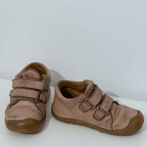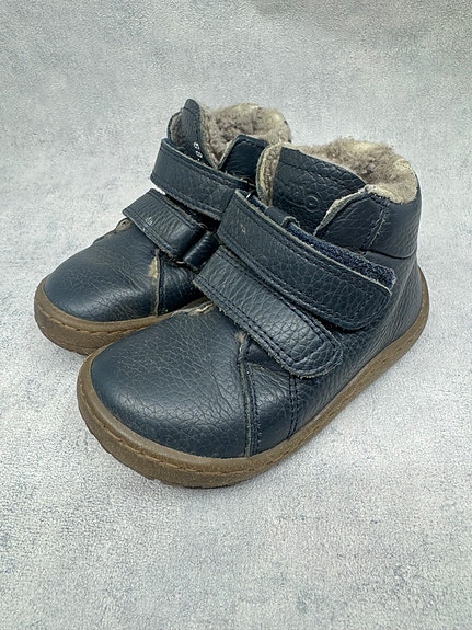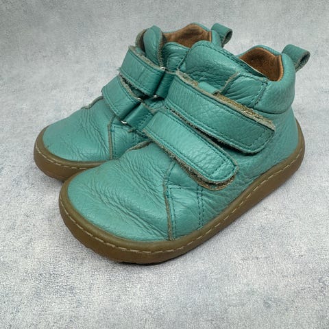 Hyväkuntoiset Froddon paljasjalkakengät. Pinta nahkaa. Käytönjälkeä löytyy läheltä tarkastellessa, yleisilme siisti. Tarrat pitävät erinomaisesti ja vaikkei kengissä ole merkintää vedenpitävyydestä, nahka hylkii luontaisesti vettä ja kengät on testattu vedenpitäviksi juoksevan veden alla, joten pitävät erinomaisesti kosteutta. Todella joustava pohja, hieman kulumaa kantapään kohdalla.