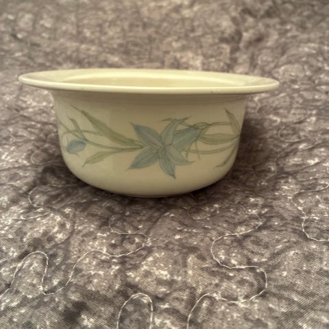 Yhdessä kupissa yläreunassa särö, näkyy viimeisessä kuvassa. Muuten kaikki astiat virheettömässä kunnossa!