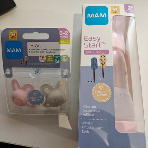 3 kpl MAM anticolic pulloja, näissä tutin mikrosterilointimahdollisuus.