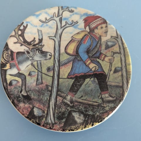 Myydään kaksi hyväkuntoista Arabia / Andreas Alariesto -seinälautasta 1980-luvulta. Molemmat ovat osa Arabian suosittua, numeroitua Lappi-aiheista sarjaa.