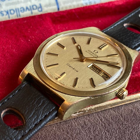 Tästä harvinaisempi puna/ruskea tauluinen Geneve automaatti, kellotaulu upeassa kunnossa ja pääsee oikeuksiinsa livenä paljon paremmin kuin kuvissa.