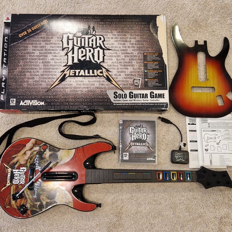 Myytävänä Guitar Hero III Legends of Rock pelipaketti. Pakkaus sisältää kitaran, olkahihnan, vastaanottimen, GH3 pelin, ohjekirjan, tarra-arkin sekä alkuperäisen pakkauksen.