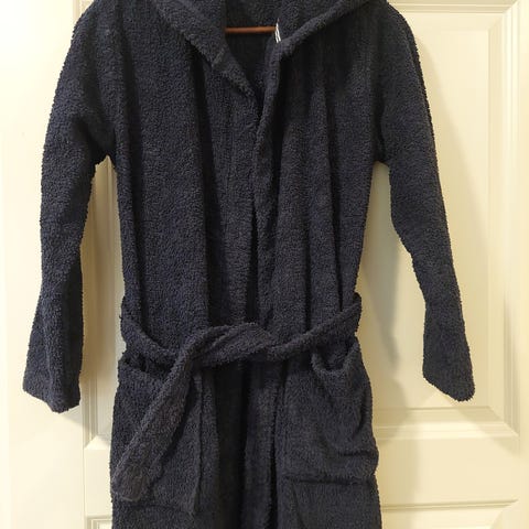 Ihanan pehmeä, vanhan roosan sävyinen kylpytakki/aamutakki! Toisessa hihassa jälki (ehkä maalia?), joka ei lähtenyt pesussa (ks. lähikuva). Muuta "moitetta" en löytänyt.