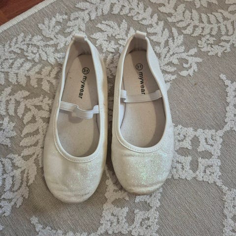 H&M tyttöjen ballerinat, koko 31. Vaaleanpunaiset kengät, joissa pyöreä kärki ja päällä joustava remmi jalan tukemiseksi. Kärjessä koristeellinen kangaskukka. Pohjat kumia, päällinen synteettistä materiaalia. Sopivat arki- ja juhlakäyttöön tytöille, joilla kengänkoko 31.