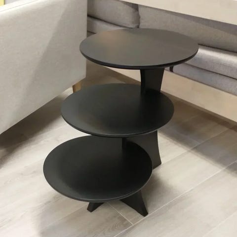 Ruotsissa valmistettu tyylikäs kolmion muotoinen pöytä sopii sivupöydäksi ja lamppupöydäksi. Sohvapöydässä on alhaalla laskutaso esimerkiksi lehdille tai kaukosäätimelle.