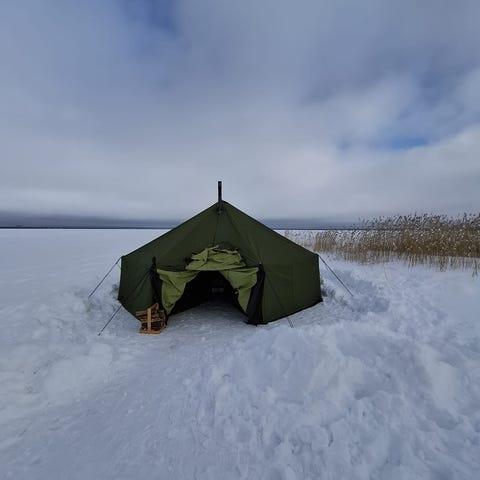 Myydään lähes käyttämätön setti eli teltta,pohjakaave,tikut,kamiina ja kuljetuslaatikko. Ehkä viis kertaa pystytetty.
