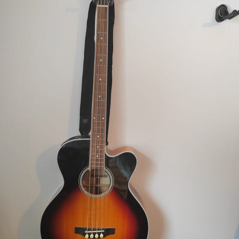 Ibanezin elektroakustinen bassokitara. Toimii myös akustisena. Pitää vireen hyvin, huollettu säännöllisesti ammattiliikkeessä. Vähäisen käytön vuoksi.