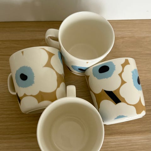 Uudenveroisessa kunnossa olevat Marimekon Oiva 4dl kupit ja kulhot värissä: punainen, tummansininen ja valkoinen. Vain nouto, minulta löytyy pakkausmateriaaleja kuljetusta varten.