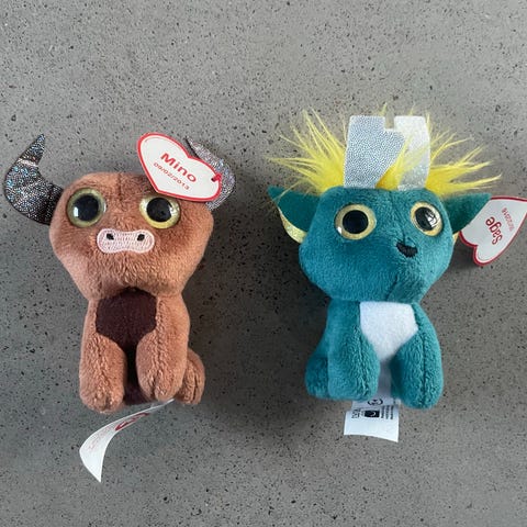Ty pikkupehmot: kirahvi, pöllö, 2 x kala 2x koira, leopardi, lohikäärme ja leppäkerttu. Leikeissä olleita, ehjiä, Ty lappuja ei ole leikattu irti. Kaikki 10 kpl myydään yhdessä.