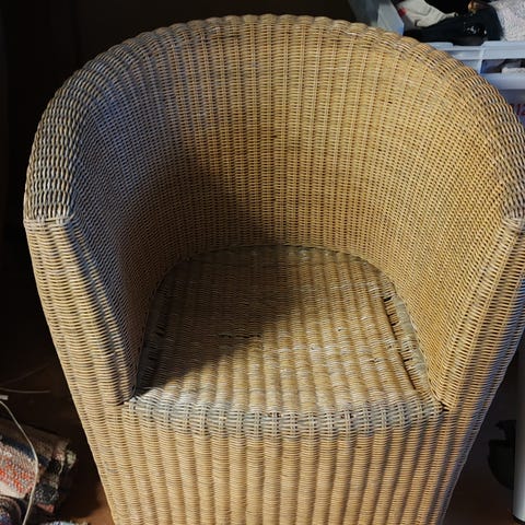 1950-60 luvun taitteen rottinkisänky-/koppa. Sopii esim vauvan ensisängyksi tai säilytyskoriksi. Pohjan koko 68x35 cm, yläreunasta 78x58 cm. Kahdessa ristikossa vaurio (puuttuu toinen ristiinmenevä rottinkitikku), muutoin hyväkuntoinen.