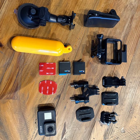 GoPro Hero 7 White actionkamera valkoisella rungolla. Kamerassa on laajakulmaobjektiivi ja takana kosketusnäyttö kuvien ja videoiden esikatseluun sekä asetusten säätämiseen. Mukana kuvissa näkyvä kiinnityskehikko, joka mahdollistaa kameran kiinnittämisen yhteensopiviin GoPro-kiinnikkeisiin esimerkiksi kypärään tai telineeseen. Soveltuu video- ja still-kuvaukseen erilaisissa ulkoilu- ja arjen tilanteissa.