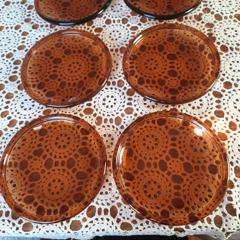 Arabia (Iittala) Luna lasilautaset 6 kpl. Yhden lautasen halkaisija 15 cm.