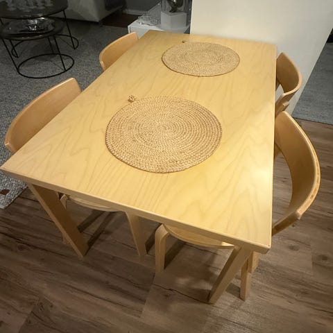 Artekin koivuinen ruokapöytä. Pöytä on ihan ok kunnossa. Pöydän pinnassa rinkuloita. Katso viimeinen kuva. Tämän pöydän hinta on 450 euroa.