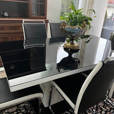 Hyvässä kunnossa kaunis ruokailurhymä myynissa, pöytä on pohjanmaan koko 140cmx90cm ja tuoli keinonahkainen, pientä käyttön jalkia löytty. Vain nouto.