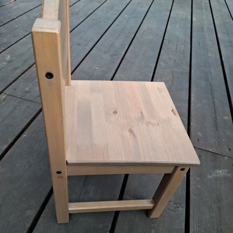 Myydään koulupöydän tuoli. Muutamassa kohtaa jälkiä kynsilakasta.