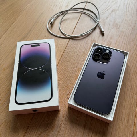Myydään siistissä kunnossa oleva deep purple iPhone 14 Pro 128GB muistilla. Laitteessa on vain lieviä käytön jälkiä. Kauppaan sisältyy SIM-avaaja sekä latauskaapeli.