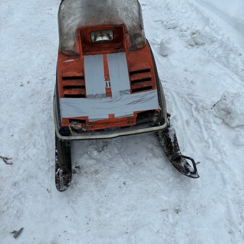 Siistikuntoinen moottorikelkka- vaatii korjausta