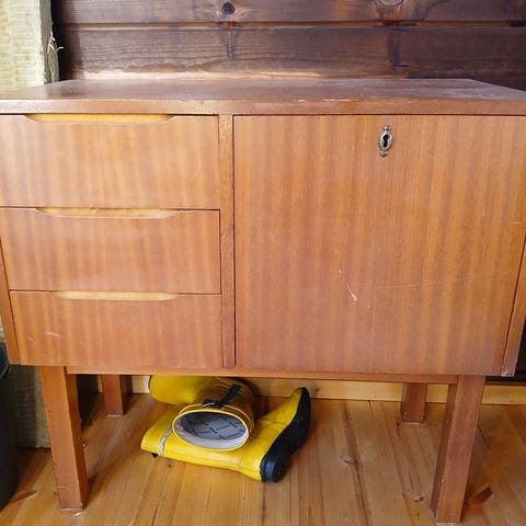 Ihana vintage teak matala yöpöytä. Ajan patinaa.