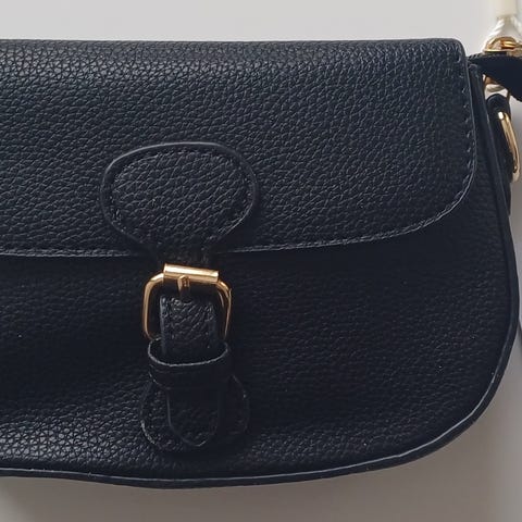 Laukussa irrotettava rannelenkki. Sekä irrotettava pitkä säädettävä hihna.