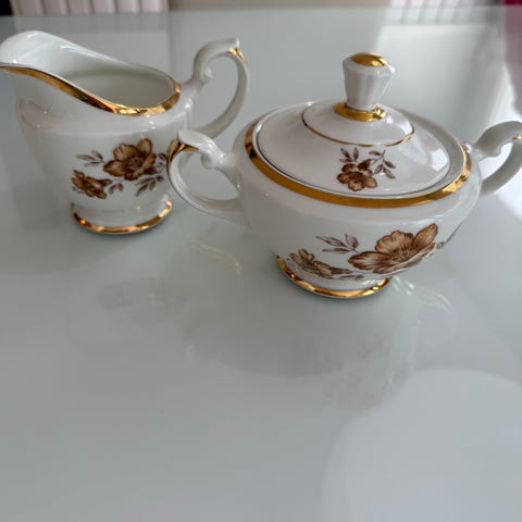Hyväkuntoiset ruskeat kultaukset, kruunu-leima, käsittääkseni 1960-luvulta, mahdollisesti jo aikaisemmin. Myydään tarpeettomana. Sokerikossakin kansi mukana.