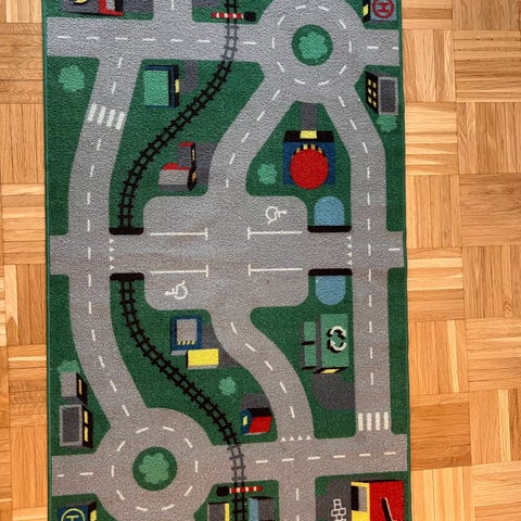Oyoy lasten automatto. 180x70cm. Kuvat epäkohdista. Juuri pesty