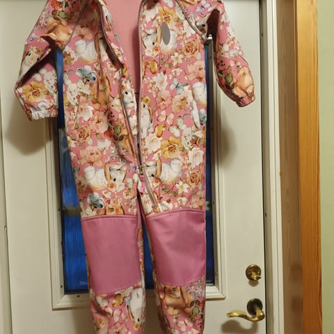Siistissä kunnossa oleva kukkakuvioinen välikausihaalari 104 softshell kankaasta.