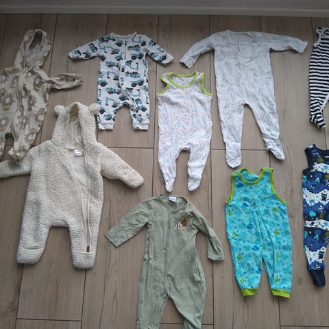 H&M vauvan collegesetti, johon kuuluu huppari ja housut. Koko 56, unisex-malli. Huppari on beige ja siinä on huppu sekä edessä eläinkuvio taskun kohdalla. Housuissa on pehmeä, korkea resorivyötärö ja lahkeissa resorit. Takapuolella eläinkuvio.