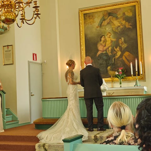 Sis Idmanin häämekko, johon tehty ompelijalla hieman muutoksia. Mekossa ihana neliömallinen kaula- aukko ja upeat hihat. Mekon alaosa on kevyttä ja hulmuavaa materiaalia ja miellyttävä pitää päällä. Alaosassa kolme erillistä kerrosta.