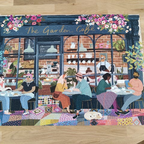 Falcon Summer at the Pub -palapeli, jossa on 1000 palaa. Mukana pieni juliste, jossa kuva näkyy kokonaisuudessaan ja helpottaa siis kokoamista.