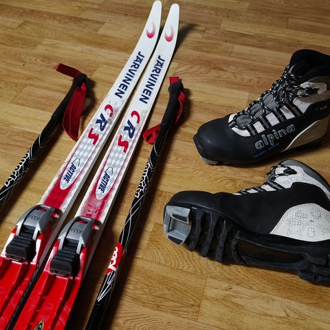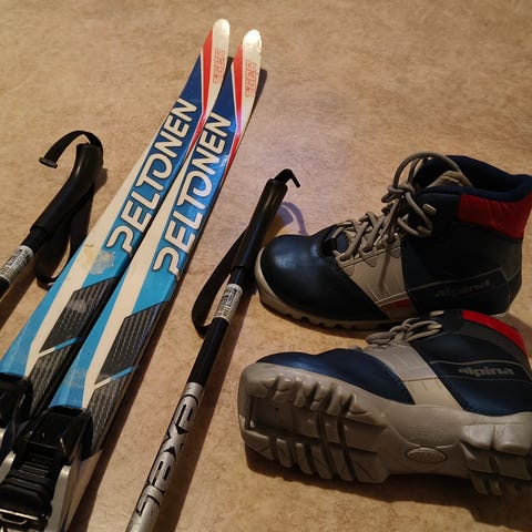 Peruskoulu ikäinen hiihto suksipakatti sukset 130 + sauvat 98cm