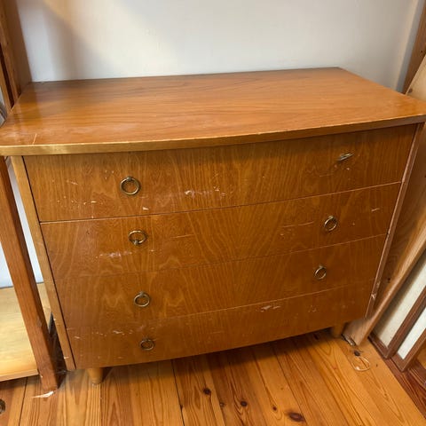 Vanhanaikainen tyylikäs lipasto, jossa mukavasti lipaston laatikoita. Lisäksi avattava kirjoitustaso. Avattuna syvyys on 71,5. Puutteena on, ettei laatikoiden avaimia ole.