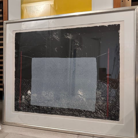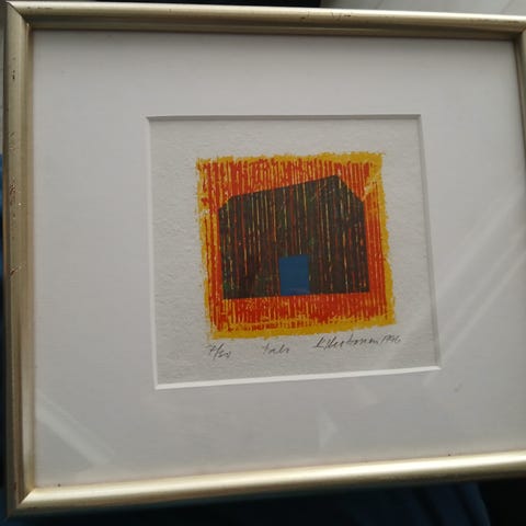 Reino Hietasen vuonna 1993 tekemä litografia, jonka nimi on "Kulmat". N. 30x30