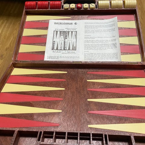 RC backgammon-matkalautapeli salkussa