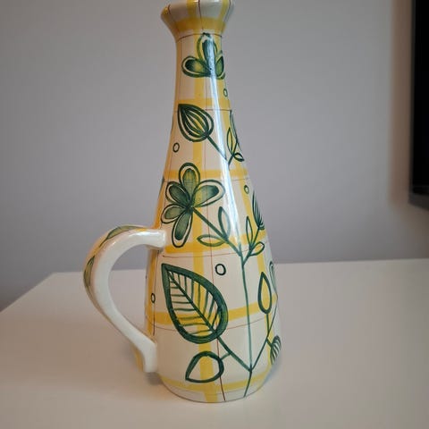 Högbacka Sipoon käsityönä valmistama maljakko kaura-aiheisella koristelulla. Materiaali: Savi