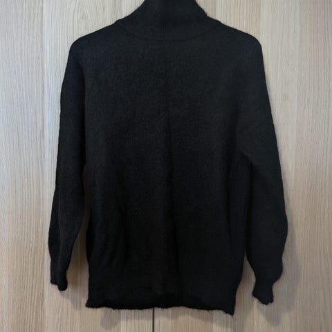 Ril’sin beigemeleerattu neulepusero villasekoitetta ;32% mohair, 32% alpakka, 30% polyamidi, 6% elastaani.) Pitkät raglanhihat, pyöreä pääntie, laatikkomainen, suora leikkaus. Vain vähän käytetty, pesty kerran käsin.