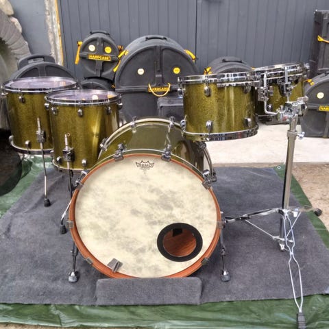 Myynnissä Japanissa valmistetut Tama Granstarin paksut koivurungot. Kamapaljouden ja ajankäytön takia ei ole aikaa lisätä tähän projektiin enää lisärumpuja. Kuvista varmasti selviää mikä setti projektin innoittajana on ollut. Vanhat wrapit on poistettu ja rummut on pinnoitettu uudestaan gloss white wrapilla. Raudat pulverimaalautettu asiaan perehtyneessä firmassa. Basarin päälle tulevaa tomiholderia ja itse tomipidikettä ei muista raudoista poiketen ole vielä pulverimaalattu, ne saa kuitenkin mukaan. Kolmeen rumpuun löytyy myös badget joita en ehtinyt kiinnittämään. Ne saa kuitenkin myös mukaan.