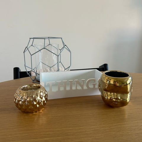 Myydään settinä sisustustavaraa. Osassa enemmän käytönjälkeä, osassa vähemmän.