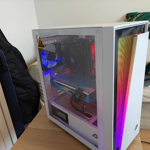 Tässä sopivan tehokas pelikone hyvään hintaan. Kone on vasta puhdistettu ja sillä pystyy pelaamaan 1080p resoluutiolla todella hyvin. Uudempia pelejä en testannut, mutta Witcher 3 toimi High-asetuksilla raskaimmalla alueella 60-80fps ja vähemmän raskailla alueilla 120+fps. Valorantissa keskimääräinen fps noin 200.