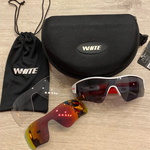 Urheiluaurinkolasit kestävää TR90-materiaalia. PC-linssit, joissa 100 % UV-suoja.