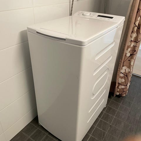 Vanha, mutta täysin toimiva pesukone, painoraja noin. 3 kg. Mahtuu pieneenkin tilaan.