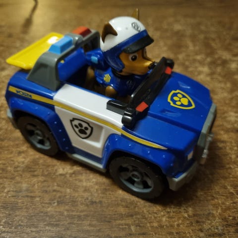 Ryhmä Hau Chase poliisiauto lelu ajoneuvo ja hahmo sininen. Settiin kuuluu sininen Ryhmä Hau -teemainen poliisiauto sekä Chase-hahmo kypärällä. Auto on muovia ja siinä on pyörivät renkaat, takana keltainen taso ja kyljissä tassulogot. Hahmo mahtuu istumaan auton kyytiin. Sopii lasten leikkeihin Ryhmä Hau -sarjan hahmojen kanssa ja ajoneuvoleikkeihin sisätiloissa. Hyvä käytetty kunto