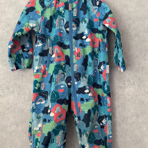 Hyväkuntoinen Reiman välikausihaalari. Aran värin vuoksi pientä tahraa paikoin sekä tummentumaa kts. kuvat, mutta yleisilmeeltään puku on hyvin siisti. Polvet ja peppu myös siistit, vain hieman pehmenneet. Oikein hyvä puku seuraavalle pienelle. Silikoniset jalkalenkit. Hajusteeton.
