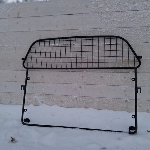 Metallinen koiraverkko autoon. Verkko on suorakaiteen muotoinen, yläreunassa loivasti kaartuva ja väriltään musta. Tarkoitettu asennettavaksi auton tavaratilan ja matkustamon väliin lemmikin tai kuorman erottamiseen. Sopivuus riippuu auton mallista ja tavaratilan mitoista. Ollut Kia Ceedissä .⁴