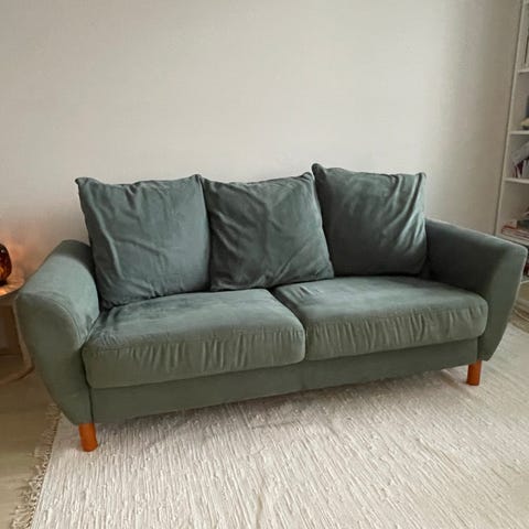 Jysk vihreä samettisohva