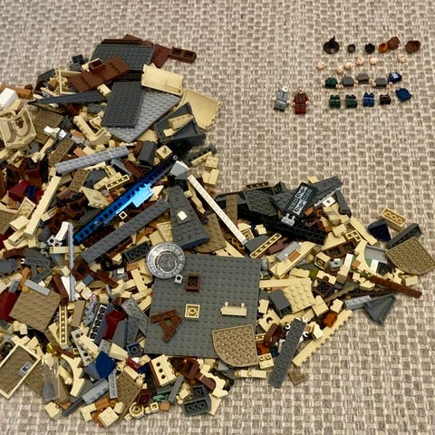 Kuvanmukaiset legot, huomioitu hinnassa että täyttä varmuutta että kaikki pikkujutut mukana ei ole mutta hyllyssä olleet pitkään koristeena.